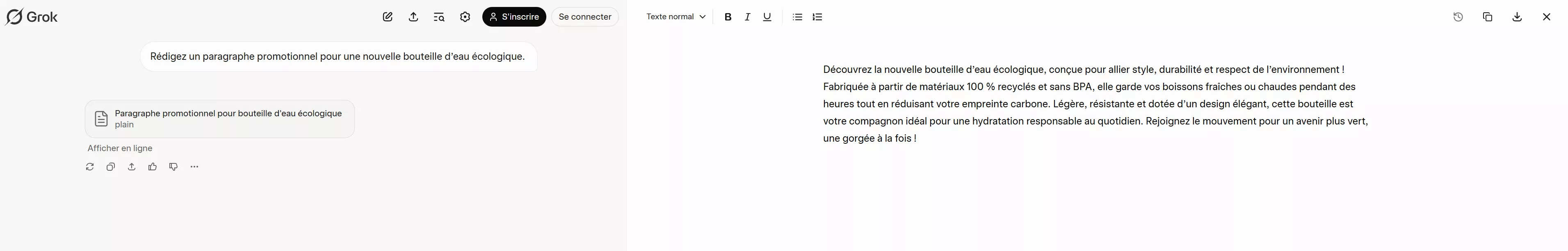 Invite 1 : « Rédigez un paragraphe promotionnel pour une nouvelle bouteille d’eau écologique. »
