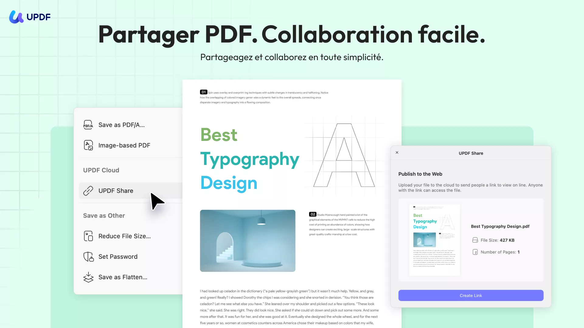La meilleure façon de partager un PDF est de créer un lien pour ce fichier, que vous pouvez ensuite transmettre à d’autres personnes. UPDF vous permet de générer un lien et de le partager facilement. Les destinataires n’ont pas besoin de télécharger le fichier PDF : ils n’ont qu’à ouvrir le lien pour consulter l’intégralité du document.