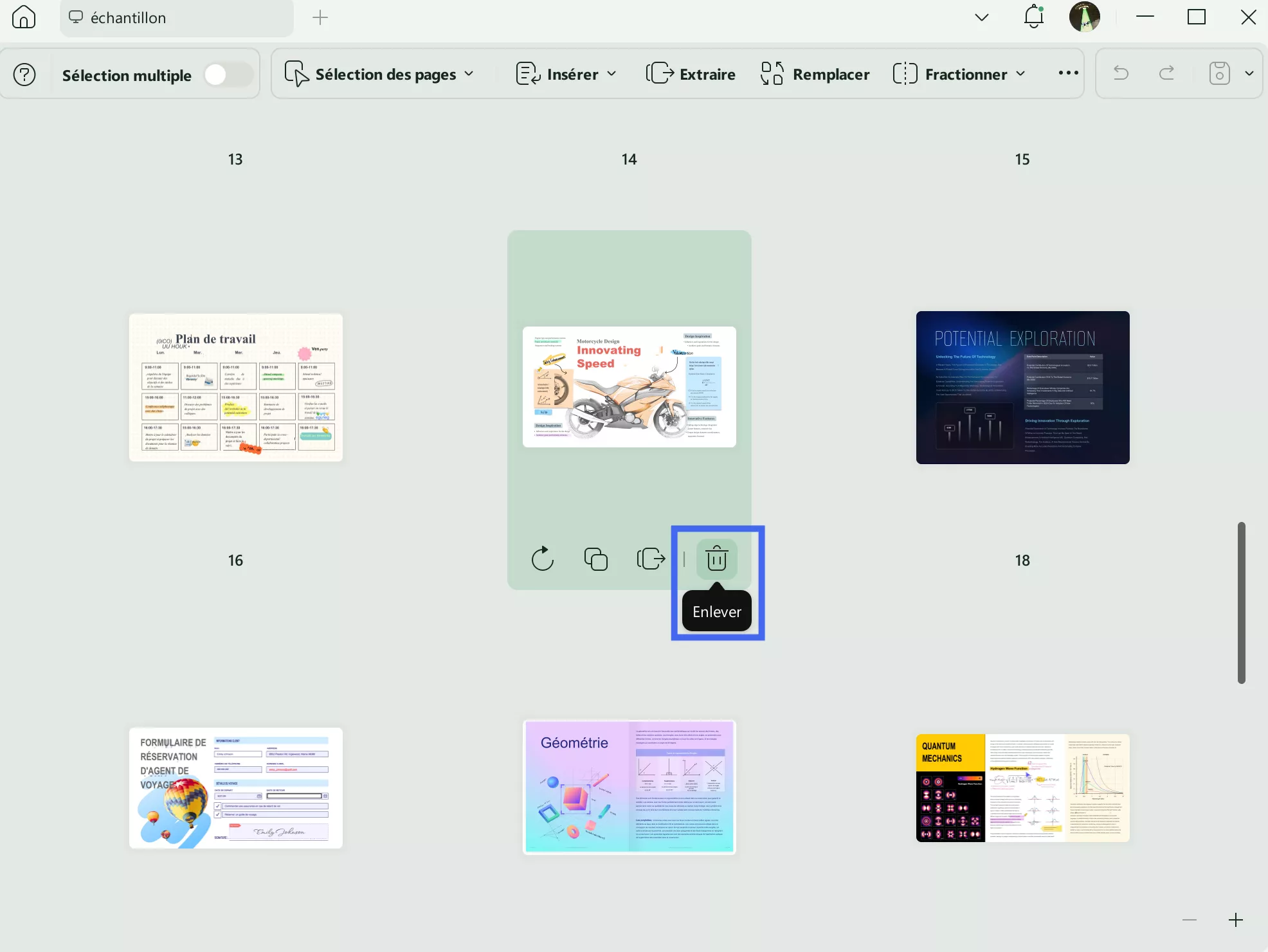 - Vous pouvez également cliquer avec le bouton droit de la souris et sélectionner « Enlever » après avoir sélectionné plusieurs pages.