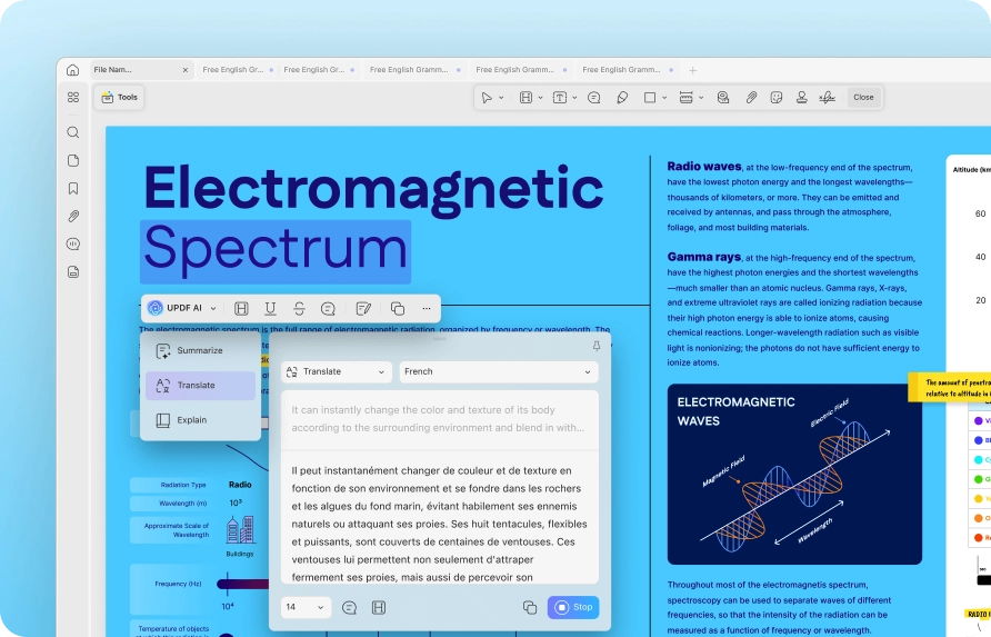 是的。執行 OCR 後,UPDF 允許使用者編輯轉換後的 PDF 中的所有元素,包括文字、圖像、背景、連結、頁首和頁尾。 此外,借助 UPDF 的 AI 助手,用戶可以翻譯、總結甚至與轉換後的 PDF 聊天,以獲得更具互動性的體驗。