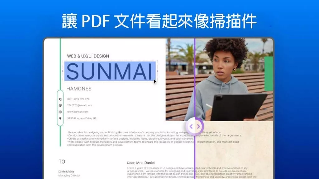 您可以將內容設為斜體或粗體,並編輯 PDF 檔案中的文字和圖形。它還允許您根據需要翻轉、刪除或交換照片,並連結到外部資源以獲取更多資訊。