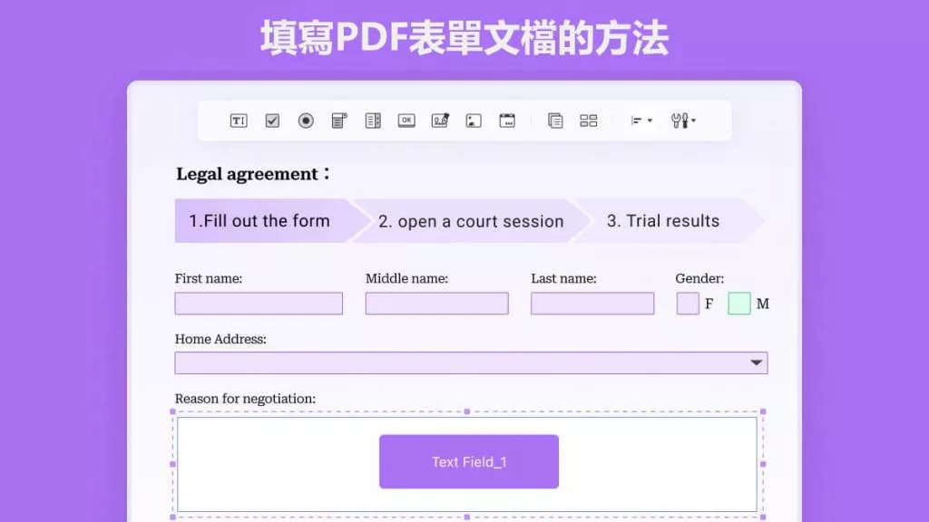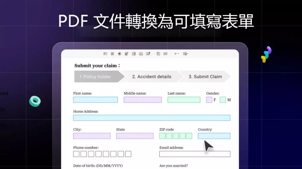 如果有任何 PDF 表單元素沒被辨識為可填寫狀態,你可以點擊文字方塊、下拉選單、核取方塊等,將它們新增到你的 PDF 中。