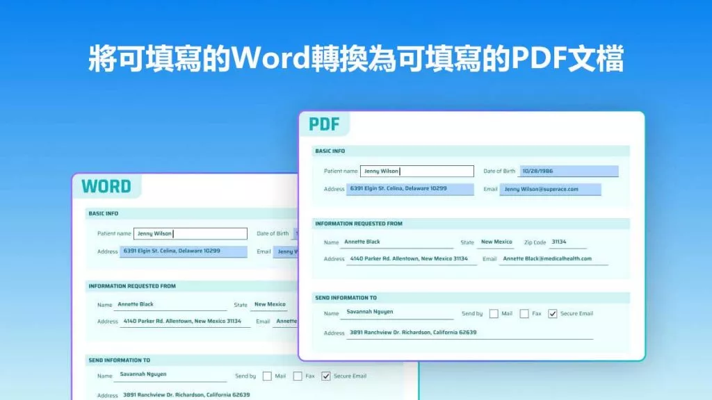 對大多數人來說,在 Microsoft Word 中建立可填寫表單很方便,但以 Word 格式分享這些表單效率不高。因為任何人都能編輯這些表單,可能導致資訊完整性問題。因此,有效的解決辦法是將 Word 可填寫表單轉換成 PDF 可填寫表單。這樣一來,可填寫欄位能讓使用者輸入資訊,而表單的其他內容則無法被編輯。