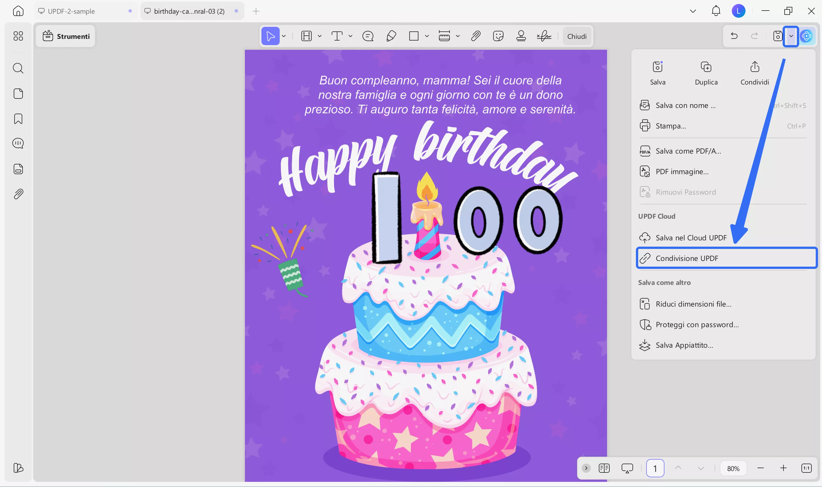 Una Dimostrazione Veloce su Come Usare UPDF per Creare e Condividere un Biglietto di Compleanno