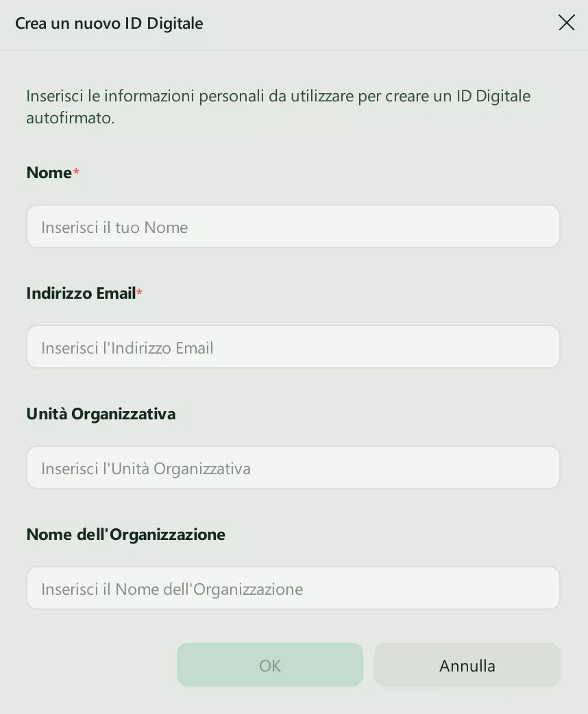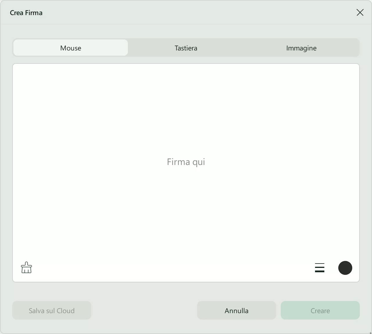 - Per creare la tua firma digitale, premi il pulsante Crea.