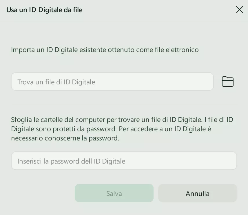 - Puoi importare un ID digitale esistente navigando sul tuo dispositivo.