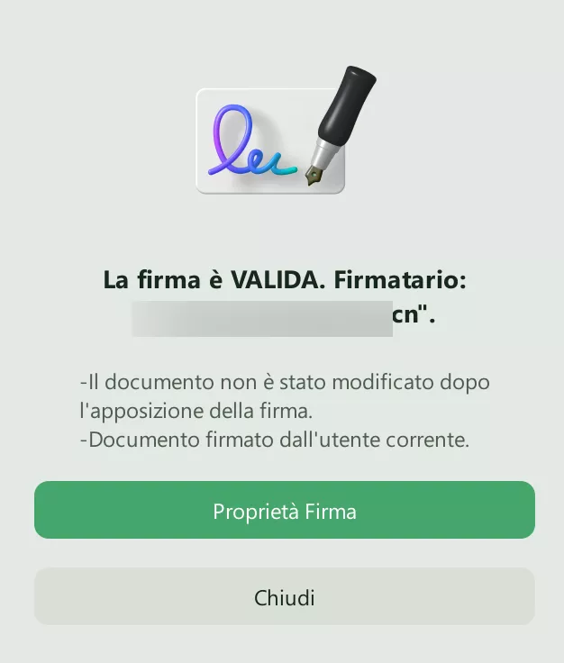 - È possibile fare clic sulla firma per visualizzarne le proprietà e il certificato.