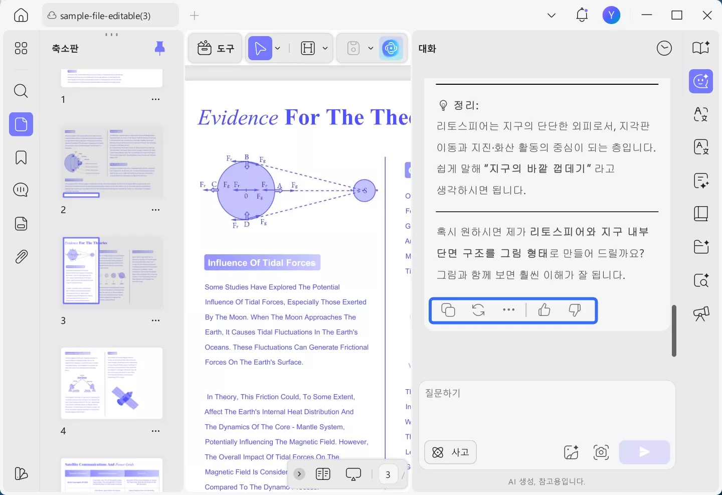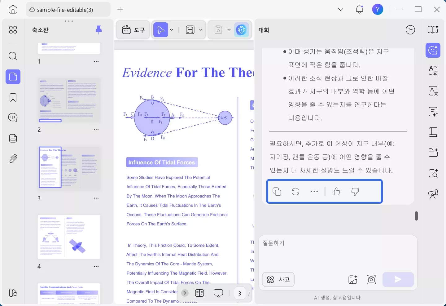 2단계. UPDF AI가 설명을 제공하면 해당 텍스트를 복사하여 메모나 문서에 저장하세요. 필요한 경우, 답변을 다시 생성하거나 설명을 평가하여 결과를 개선할 수 있습니다.