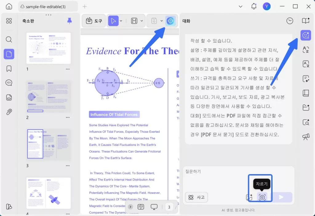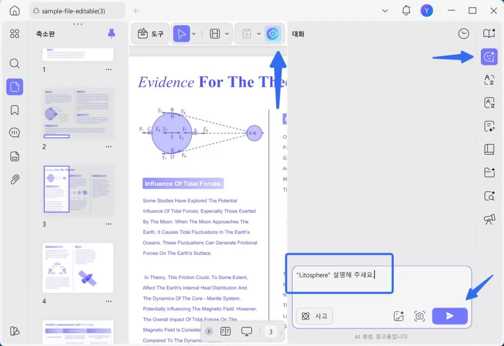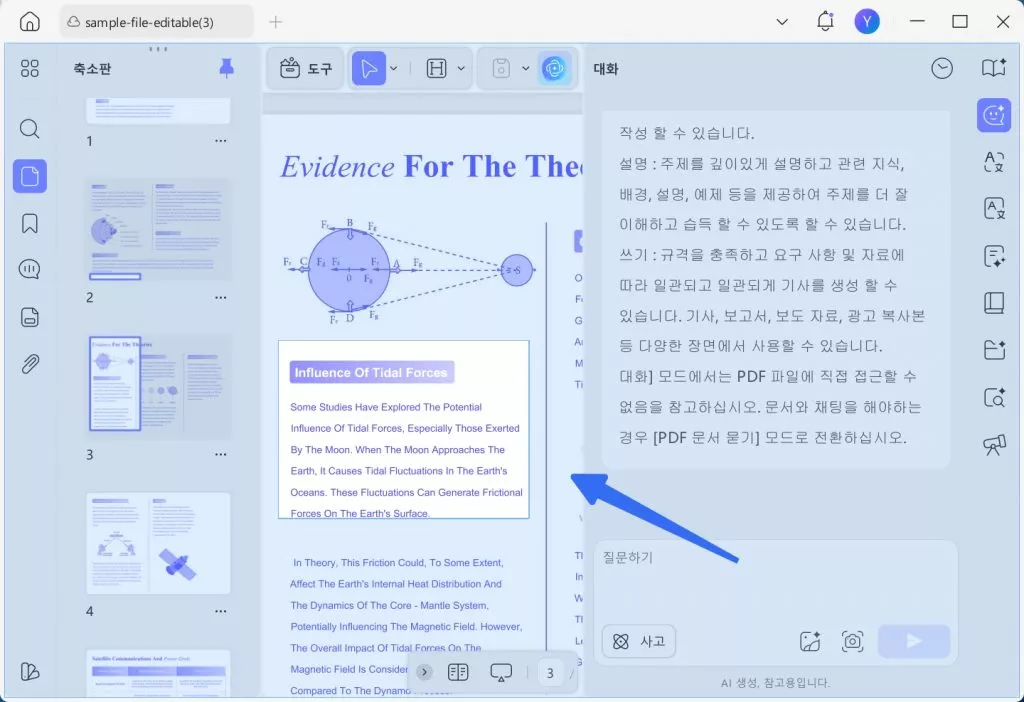 AI 기반 설명을 다운로드 없이 이용하려는 사용자에게 UPDF AI 온라인은 원활한 솔루션을 제공합니다. 이 플랫폼에 문서를 업로드하면, AI가 자동으로 간략한 설명을 제공하여 주요 인사이트를 제공합니다. 또한, 해당 주제에 대해 더 깊이 이해할 수 있도록 3개의 추천 질문도 함께 제공됩니다.