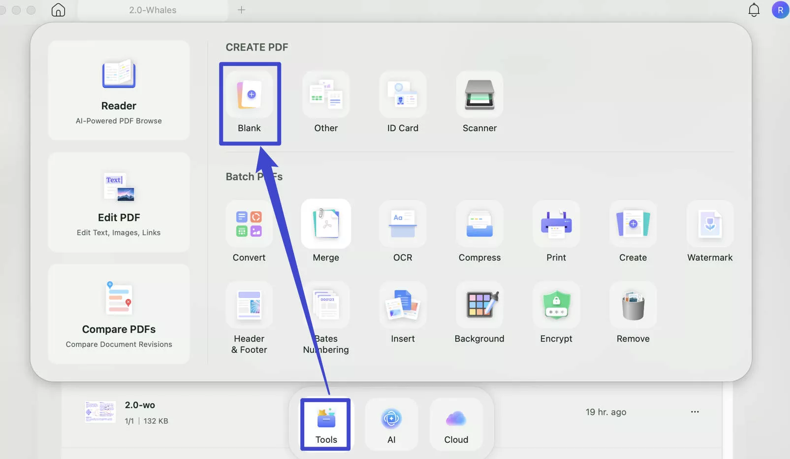 Wait, what? Do you want to create a PDF with images? Fret not, as UPDF has got you covered in this aspect too! Follow the steps below to figure out how Mac creates PDFs from images using a blank page!