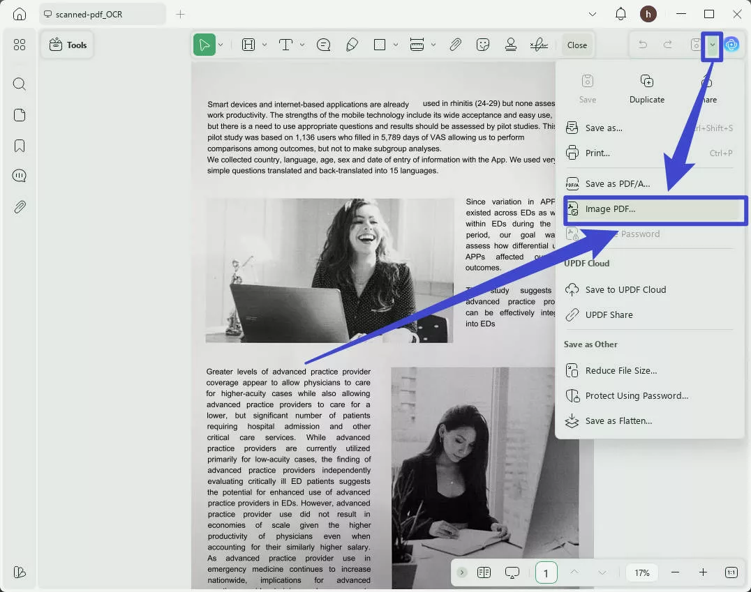 If you need to revert the OCR result and convert the OCRed PDF back to an image-based PDF, you can use UPDF to convert the OCRed PDF back to a scanned or image-only PDF. With UPDF, you can achieve this in two ways. You can use either method, whichever suits you.