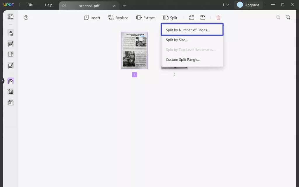 UPDF offers a convenient way for users to split a multi-page PDF into several individual PDFs, and they can also extract a specific page from a PDF as a separate PDF.