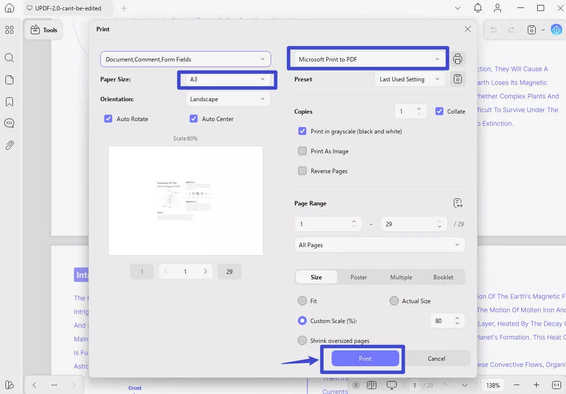 This way, you can easily print multiple A4 PDFs to A3. Simply put, UPDF is your best companion to convert/resize/scale A4 to A3 for single or multiple PDFs. Therefore, download UPDF and get the A3 formatted documents conveniently.
