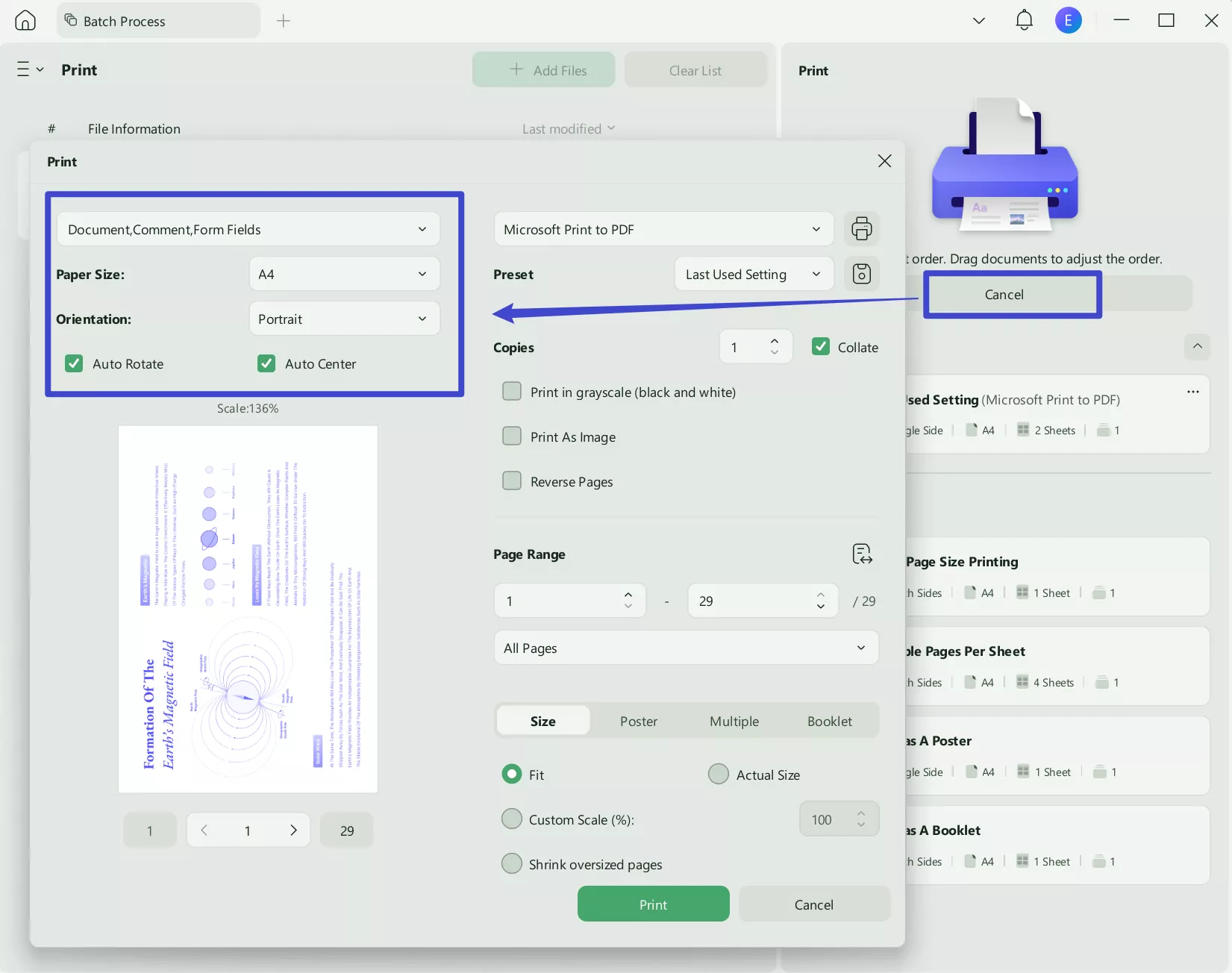Managing a large number of PDF documents can be difficult. Especially when all of them must adhere to the A4 page size standard. Fortunately, UPDF's batch printing option makes this process much easier.