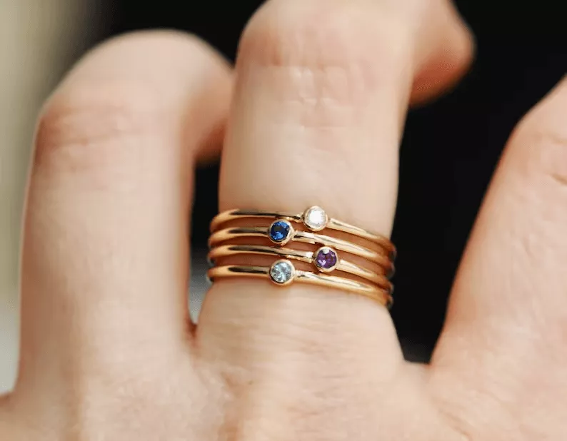 A birthstone ring featuring the stones of her children or loved ones. It is an emotional and symbolic piece of jewelry representing family connections. Shop here.